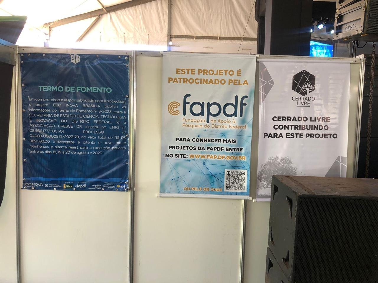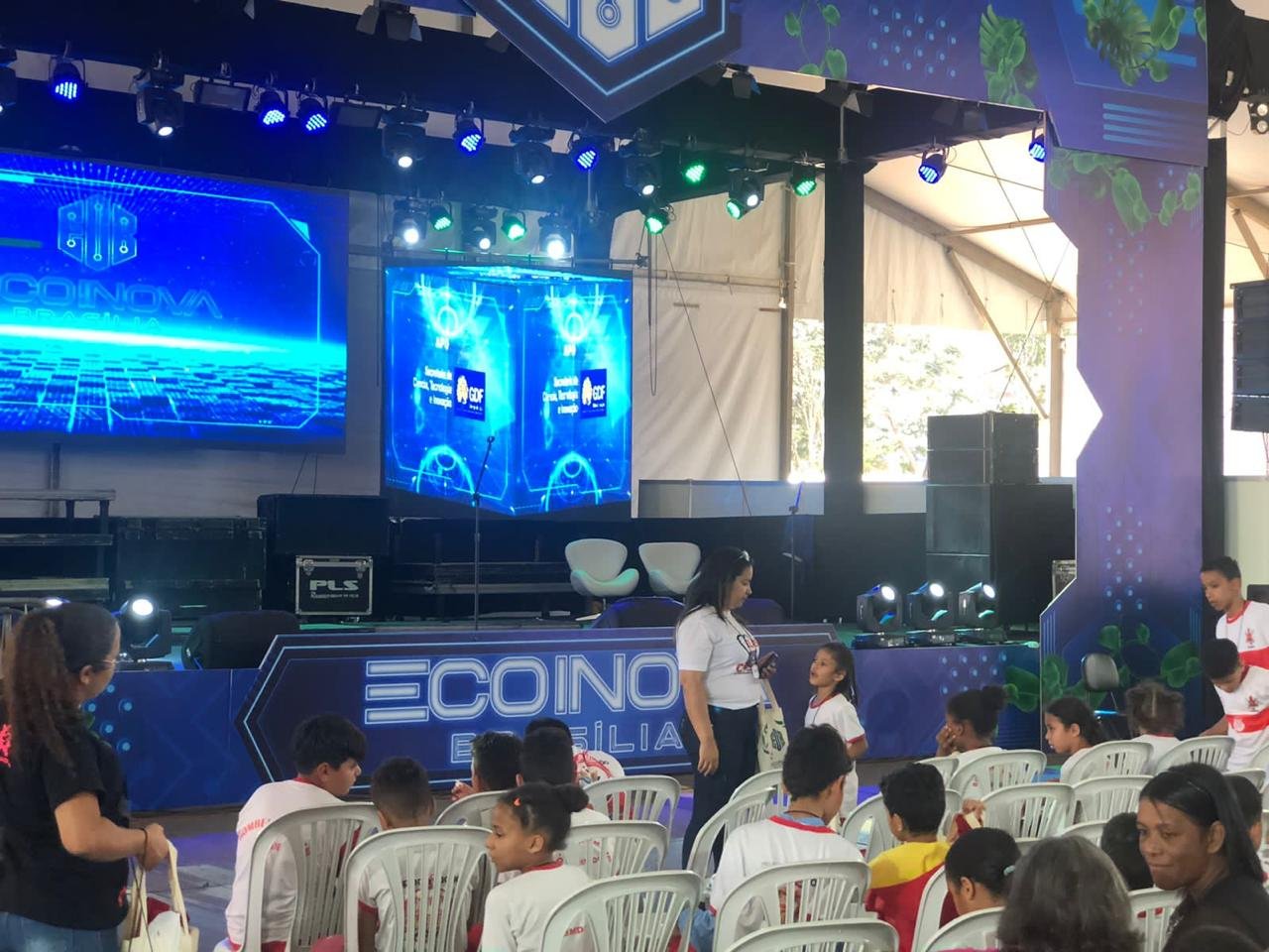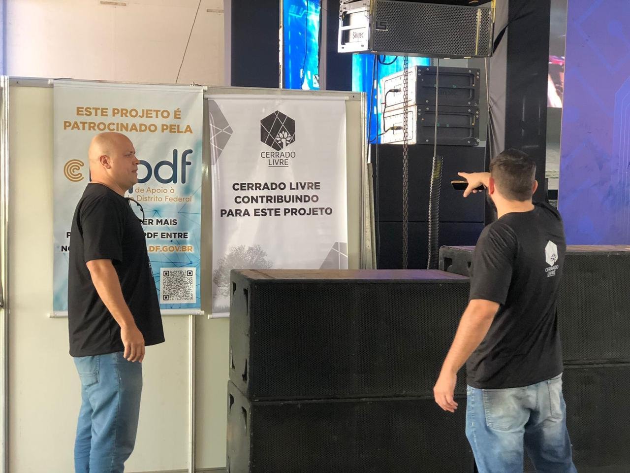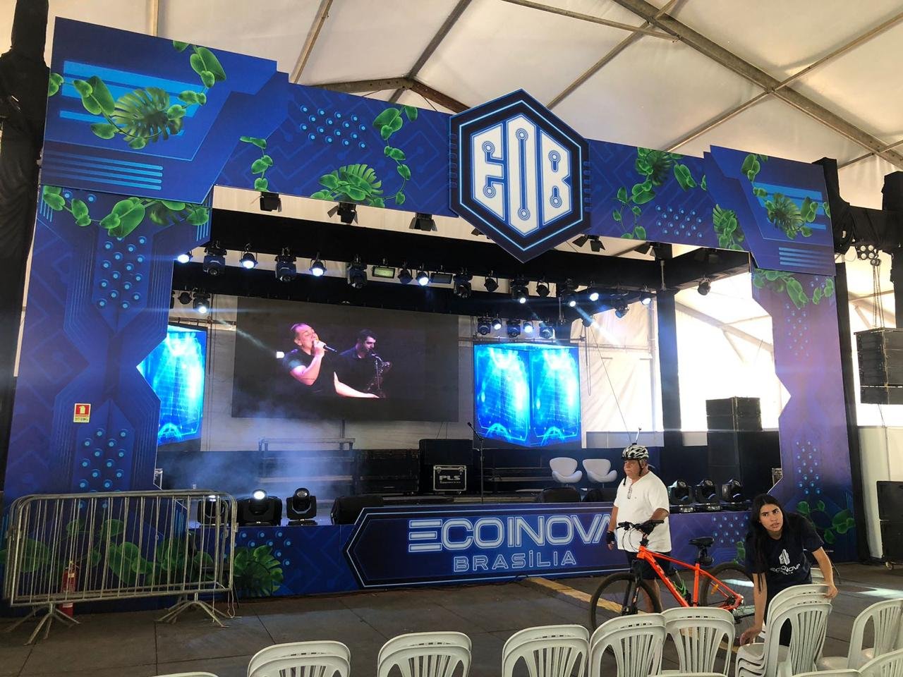 De 18 a 20 de agosto de 2023, contribuimos para o projeto Eco Inova Brasília, na montagem do palco, passagem de luz e som. Também participamos de palestras de economia criativa.